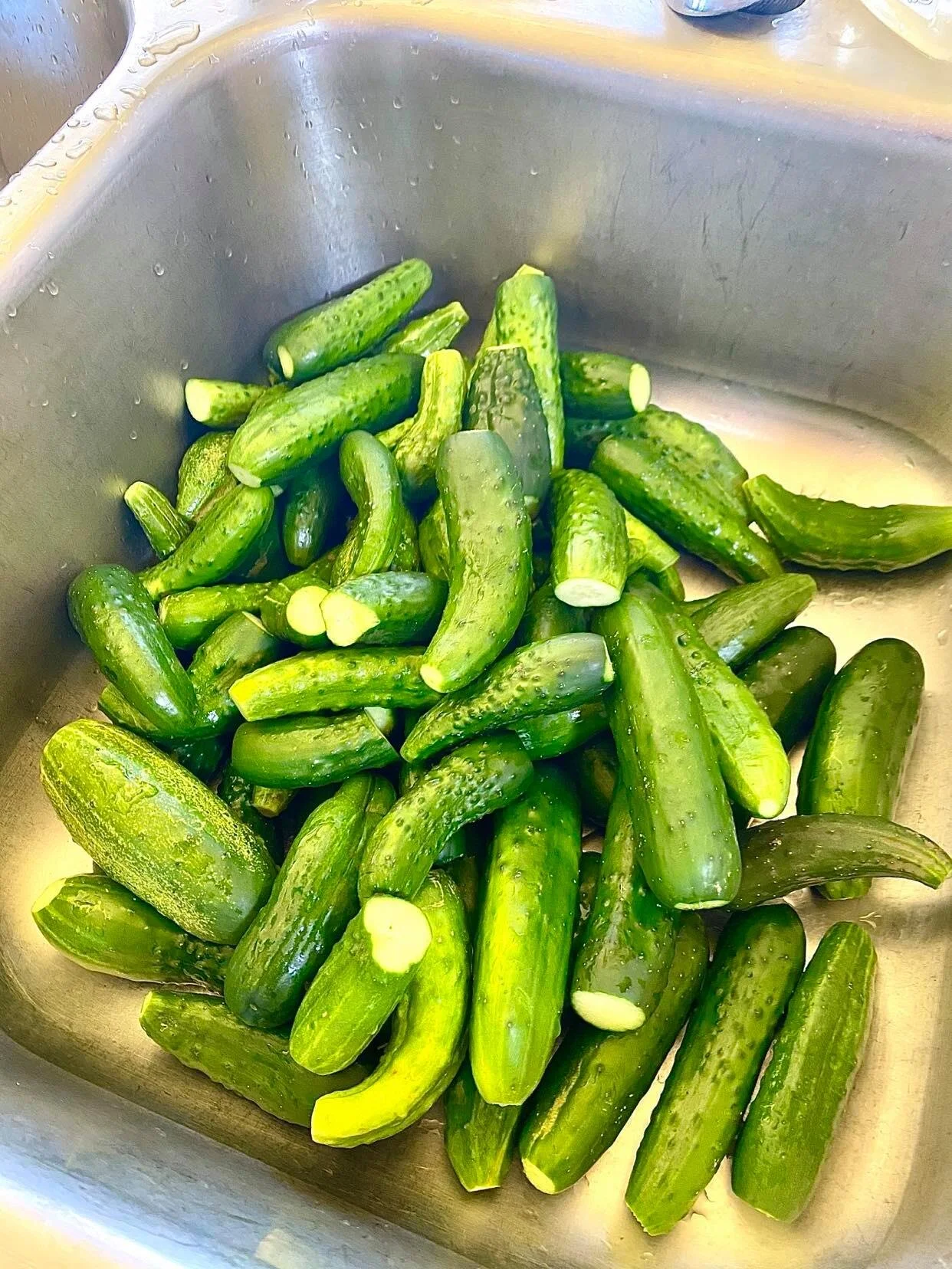 Pickles is probably the easiest canning project to start with. You should have plenty of time to get your pickles and jar stuffings ready while you wait for your jars to sanitize and your water bath to boil.
