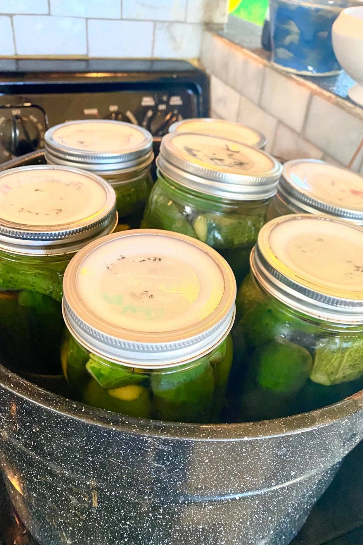 BONUS TIP—always make sure your jars and all of your food material stay hot. Cold jars can crack and break in your water bath. True story.