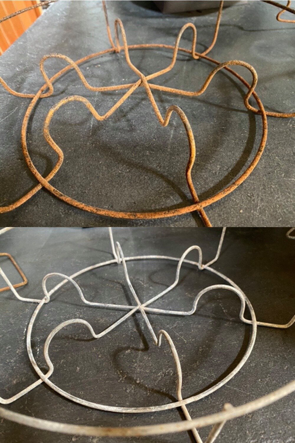 Here we can contrast the two styles of canning rack currently available on the market. The top one is the hated rack—the rounded bottom one. I hate it. Why do I keep it? In case something were to magically happen to my rack that I LOVE, the flat bottomed one, that is on the bottom of this photo.